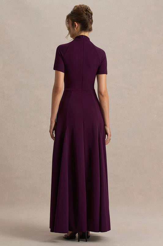Alea | Burgundy High-Neck Short-Sleeve Maxi Dress