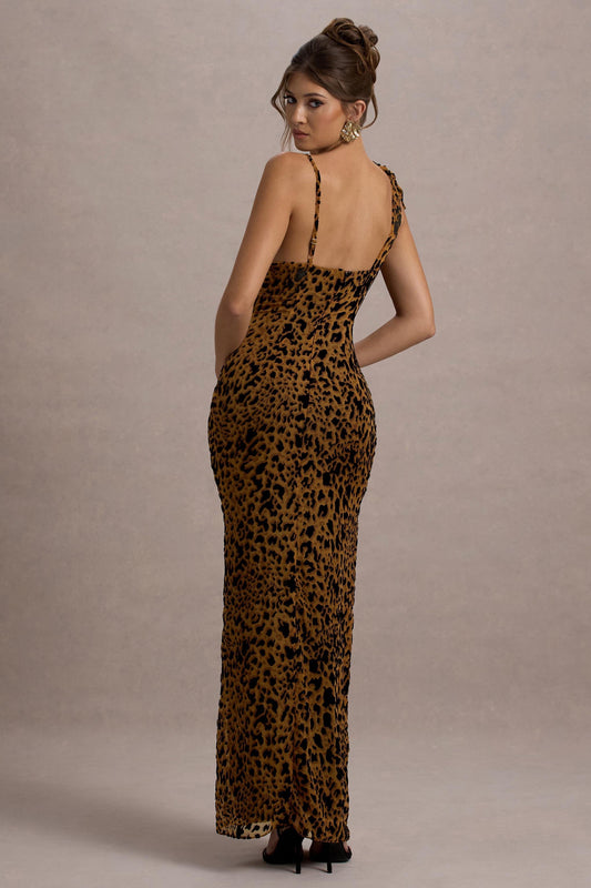 Yasmin | Leopard Print Velvet Strappy Maxi Dress With Bow