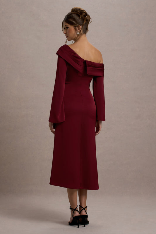 Astral | Port Satin Asymmetric Flared-Sleeve Midi Dress