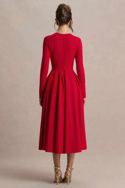 Bellamy | Red Crew-Neck Long-Sleeve Midi Dress