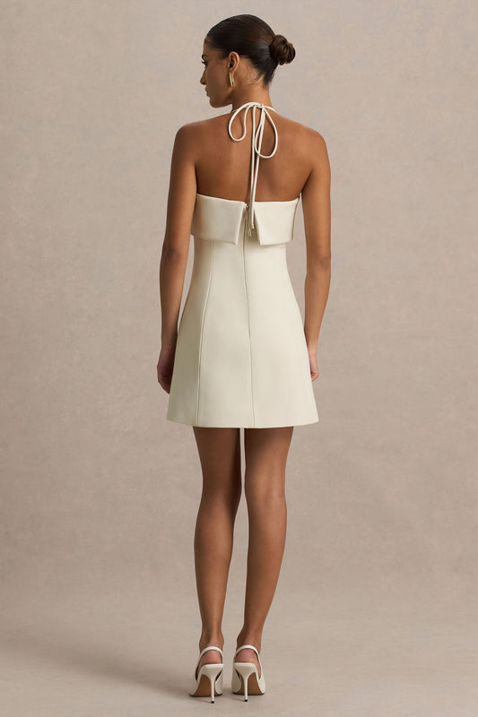 Pepita | Cream High-Neck Tailored Maxi Dress With Drop-Waist And Satin Skirt