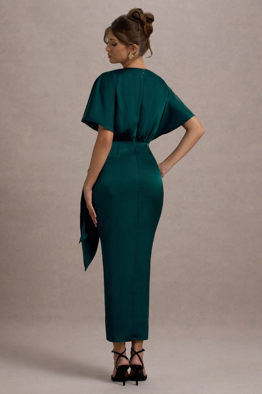 Mika | Bottle Green Satin Short-Sleeve Wrap Maxi Dress