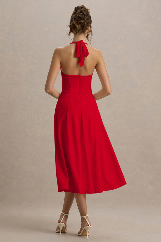 Auburn | Red Halter Skater Midi Dress