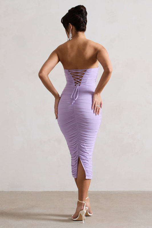 Nylah | Lilac Ruched Corset Bodycon Midi Dress