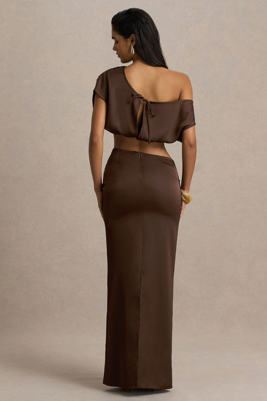 Megan | Brown Satin Wrap Maxi-Skirt With Ruched Detailing