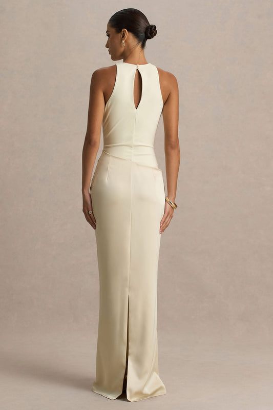 Pepita | Cream High-Neck Tailored Maxi Dress With Drop-Waist And Satin Skirt