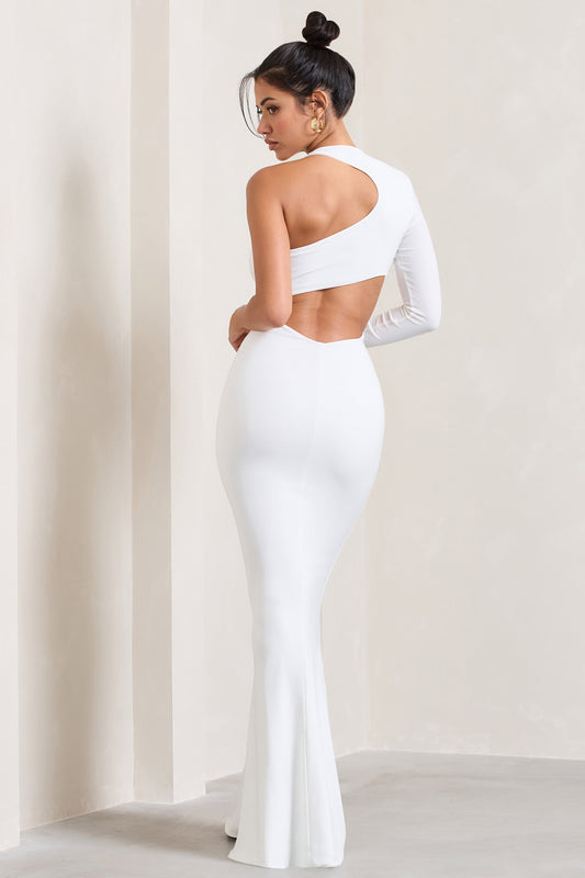 Tyra | White Asymmetric Neck Cut Out Maxi Dress With Open Back Detail