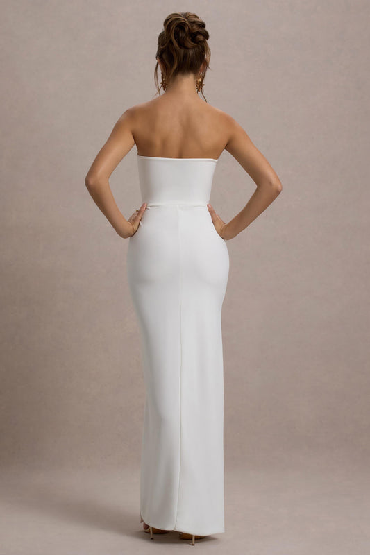 Belle of The Ball | White Bandeau Maxi Dress With Split Hem