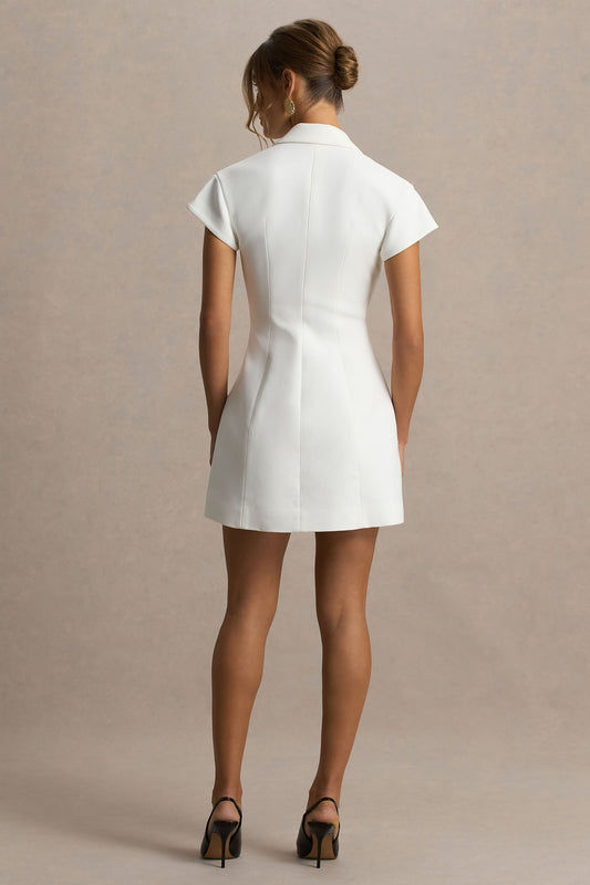 Etta | White Plunge-Neck Short Sleeved Blazer Mini Dress