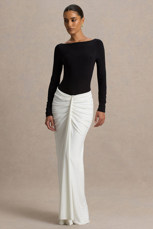 Matilda | Black And White Boat-Neck Maxi Dress With Ruched Detailing