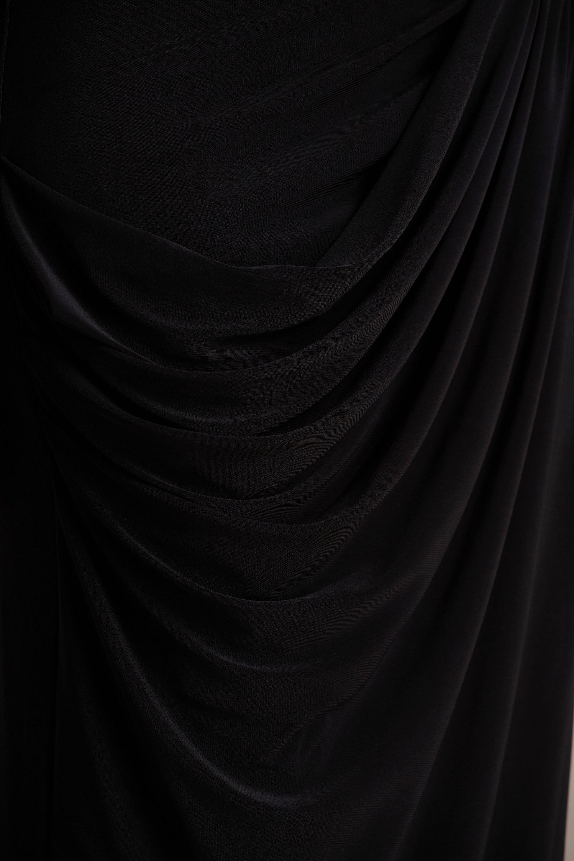 Elevate your evening style with Avaline, the ultimate skirt of the season. Crafted from our premium stretch jersey, this black maxi skirt is designed to hug your curves while offering sleek structure. The wrap silhouette creates a striking drape across the hips, enhanced by flattering ruched detailing that cinches and contours the waist. Finished with a luxe metal trim accent at the waist and a dramatic full-length hem, Avaline delivers show-stopping style with minimal effort. Style with our Luxy top for an effortlessly chic ensemble.