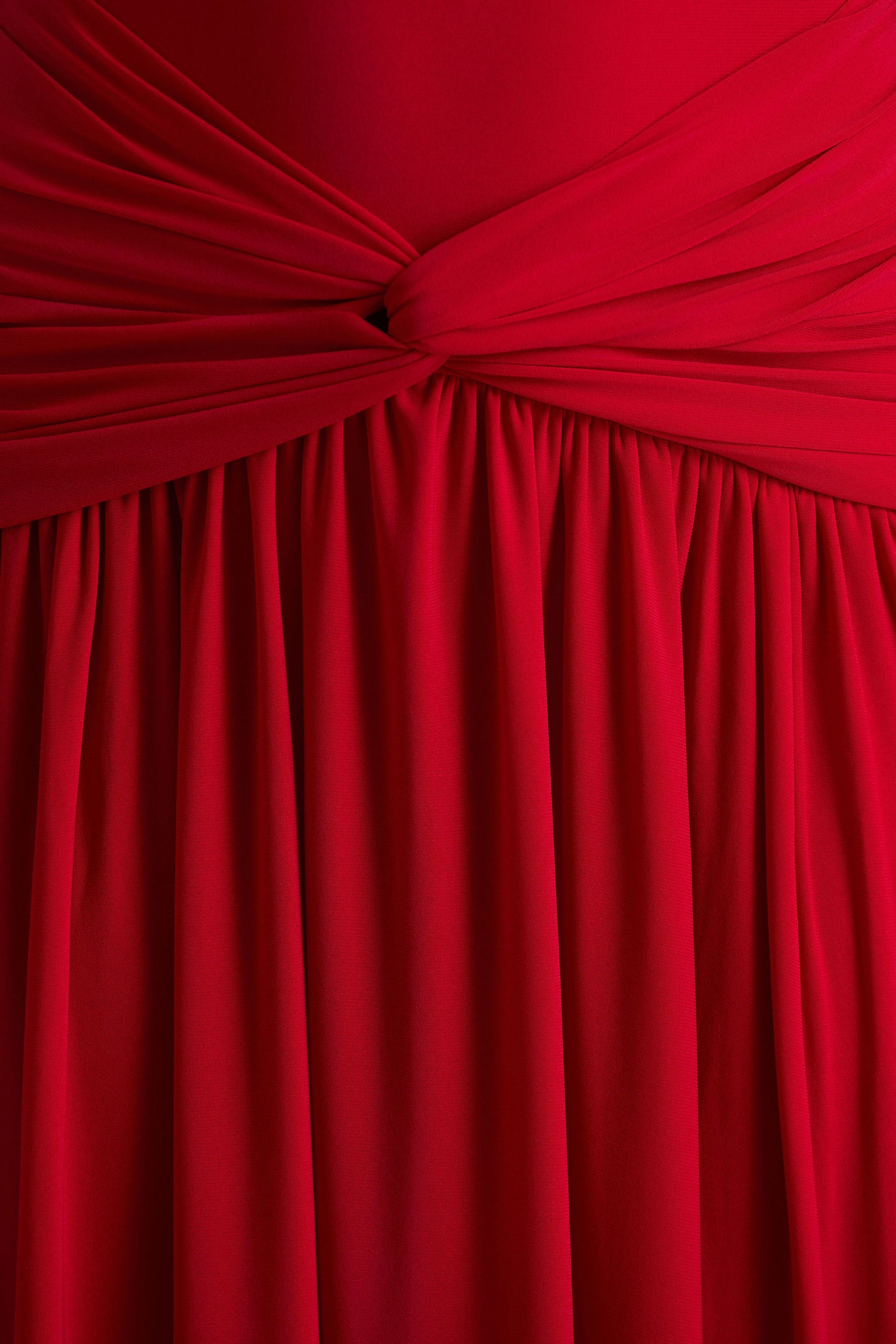 Cascade | Red High-Neck Maxi Dress With Twist Detail