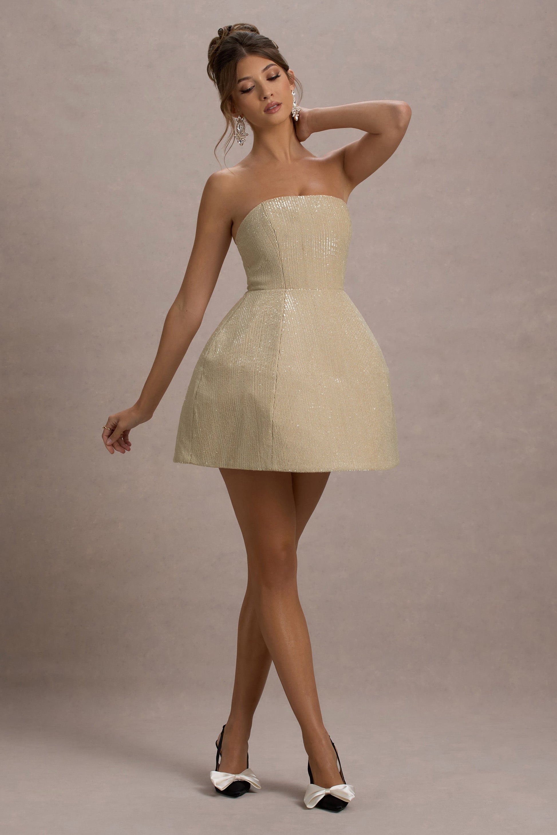 Clarabell | Cream Sequin Bandeau Structured Mini Dress