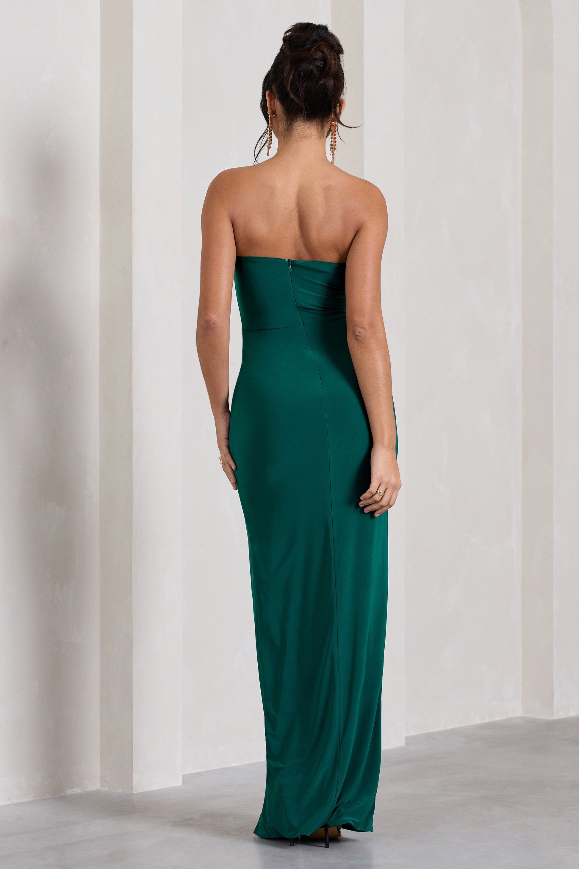 Dawning | Bottle Green Bandeau Knotted Split Maxi Dress