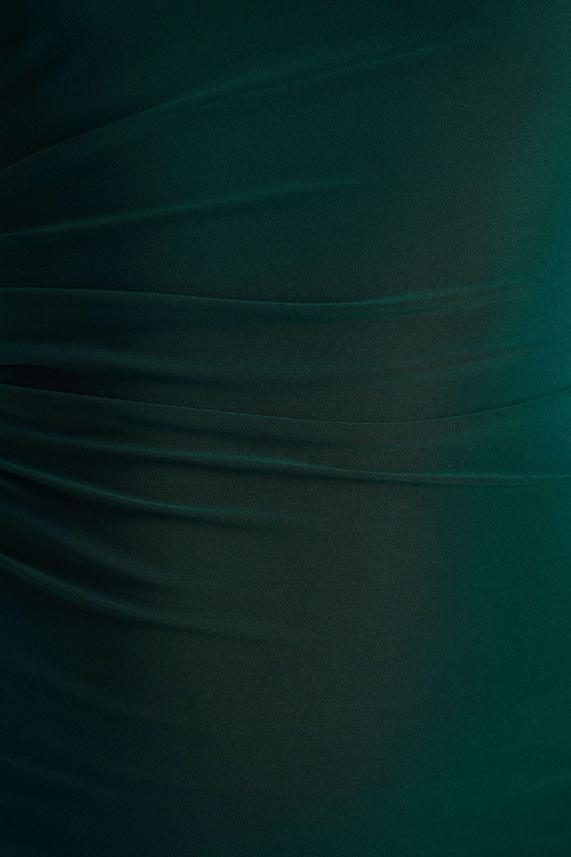 Eden | Bottle Green High-Neck Maxi Dress With Ruched Detailing