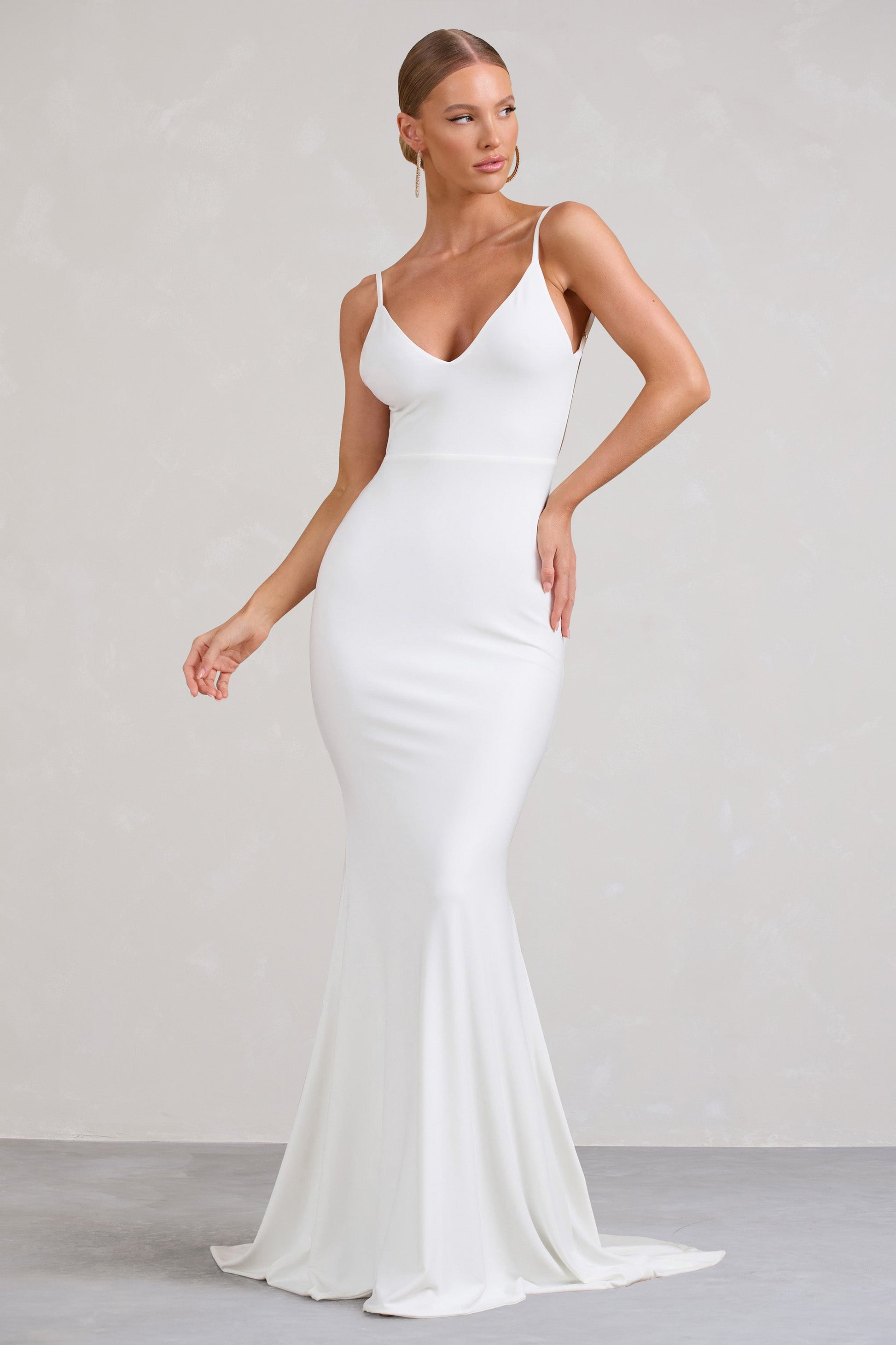 Endless Love | White Backless Knot Detail Fishtail Maxi Dress