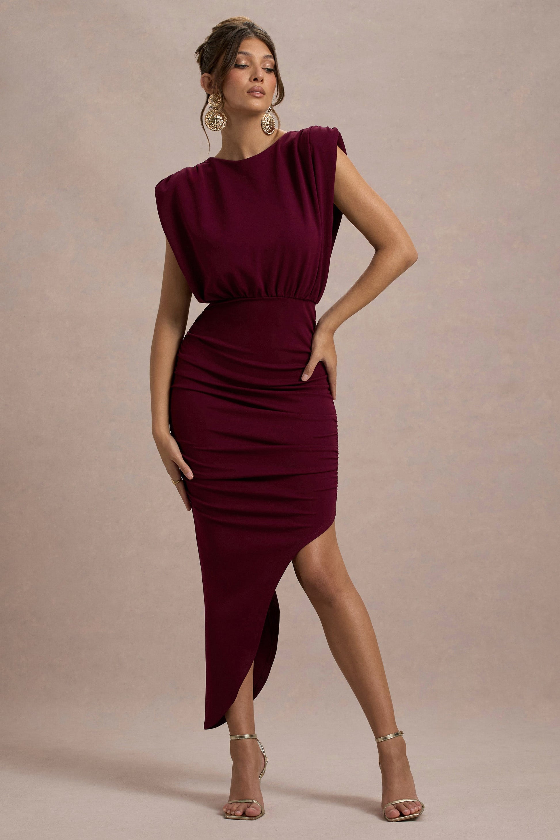 Designed in a timeless, sophisticated silhouette, Jennifer is a stand-out staple. Providing all-day comfort in our signature stretch crepe, this port maxi features a gathered waistline, shoulder padding and asymmetric hem for a flattering fit. For an elevated evening ensemble, try pairing yours with our Joseline gold earrings.