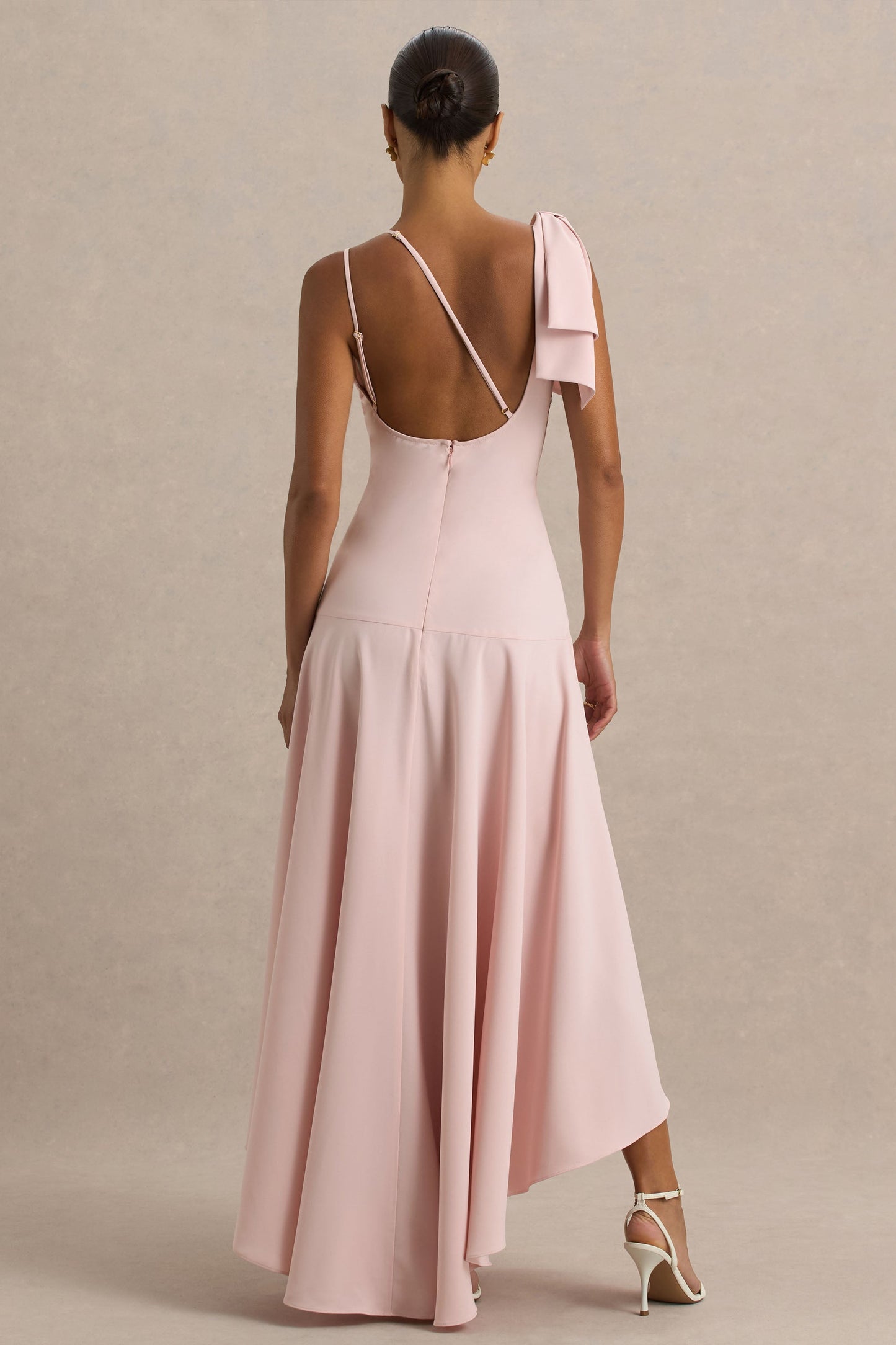 Julieta | Baby Pink Asymmetric-Neck Maxi Dress With Bow Detail And Open-Back