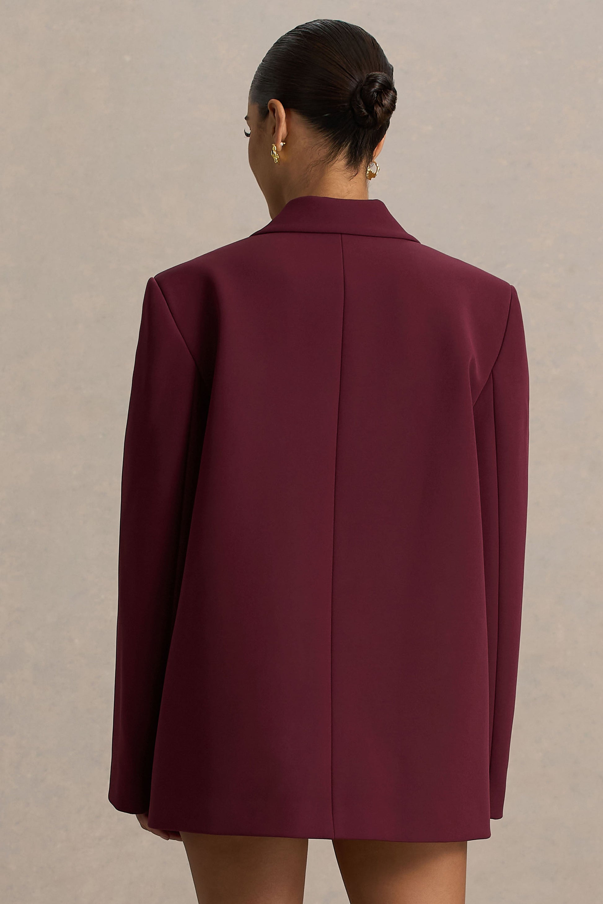 Katherine | Burgundy Plunge-Neck Tailored Blazer