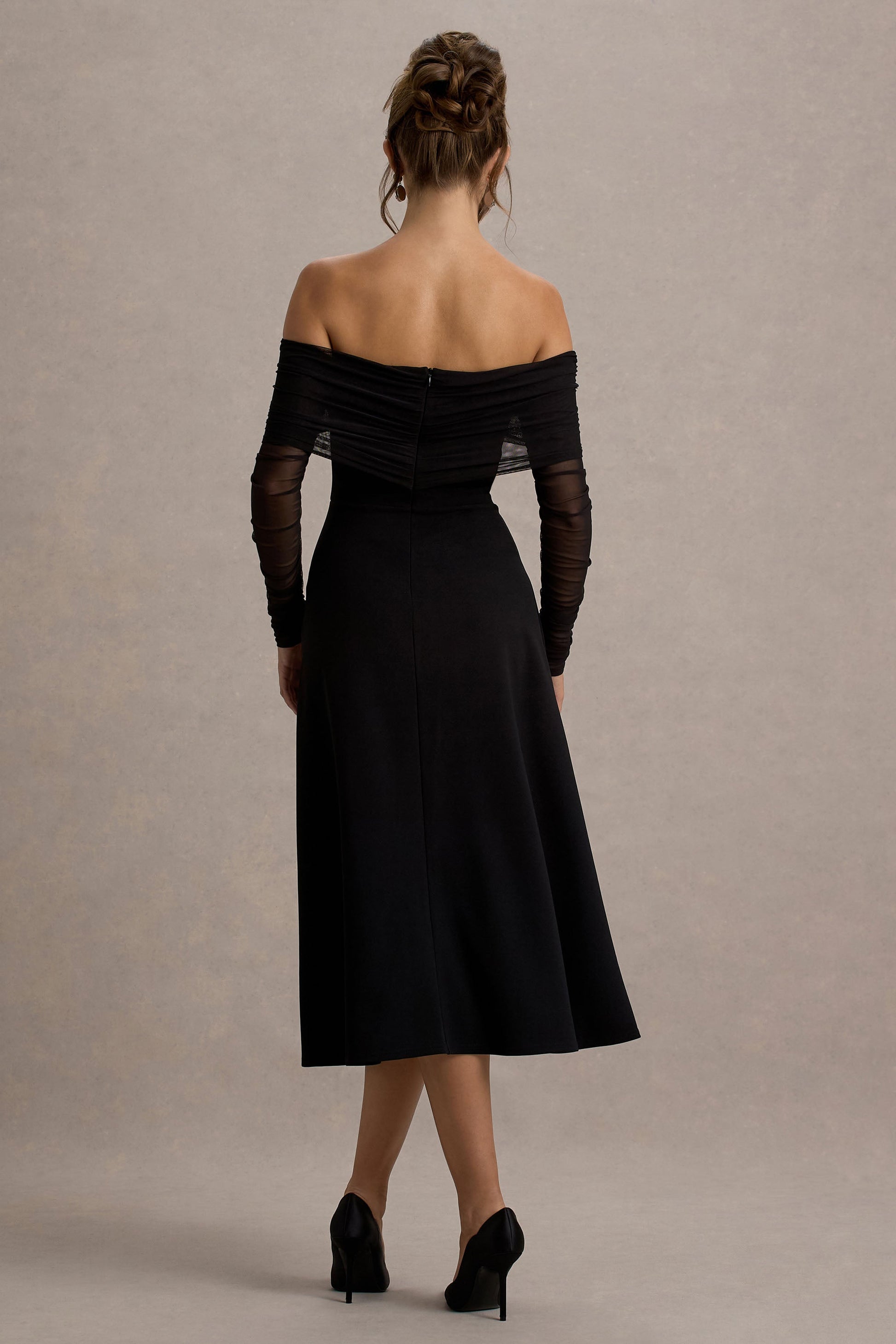Missy | Black Bardot Long-Sleeve Midi Dress