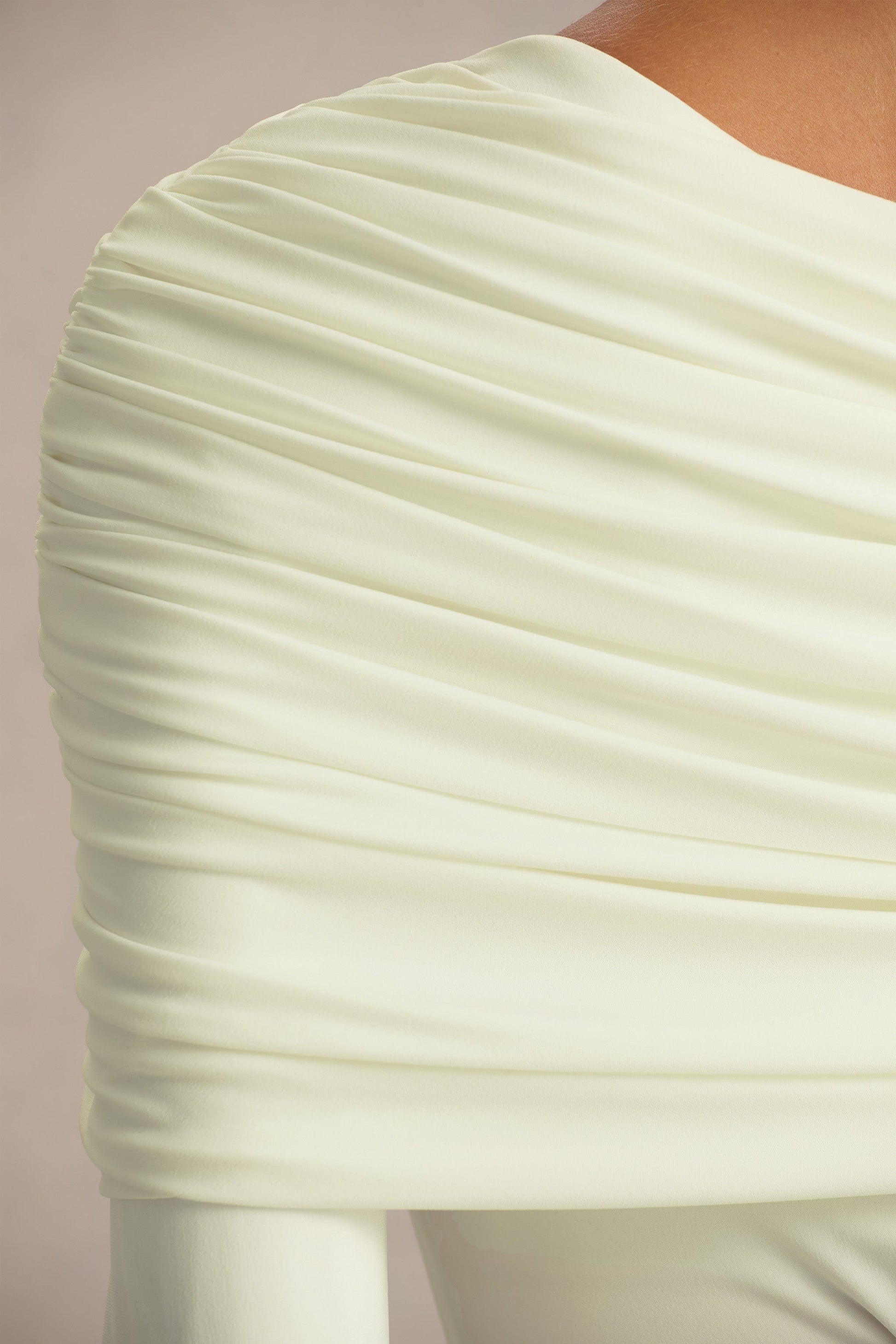 Octavia | Cream Bardot-Neck Maxi Dress With Sash And Ruched Detailing