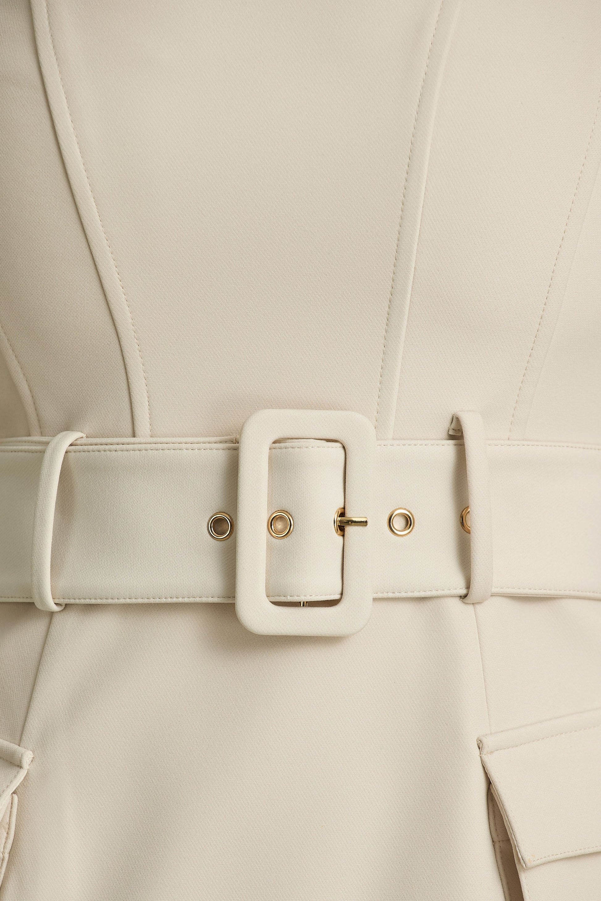 Step into the spotlight with Sandra a dress that exudes effortless elegance with a hint of daring edge. Crafted in our premium nude stretch crepe, it skims the body enhancing ever curve. The square neckline frames the décolletage beautifully, while the gold-detailed belt cinches the waist to create a flattering, feminine silhouette. Front pockets add a modern, functional touch, and the open back introduces a hint of allure. Finished with a front-high split, Sandra is a show-stopping piece made for unforgettable evenings.