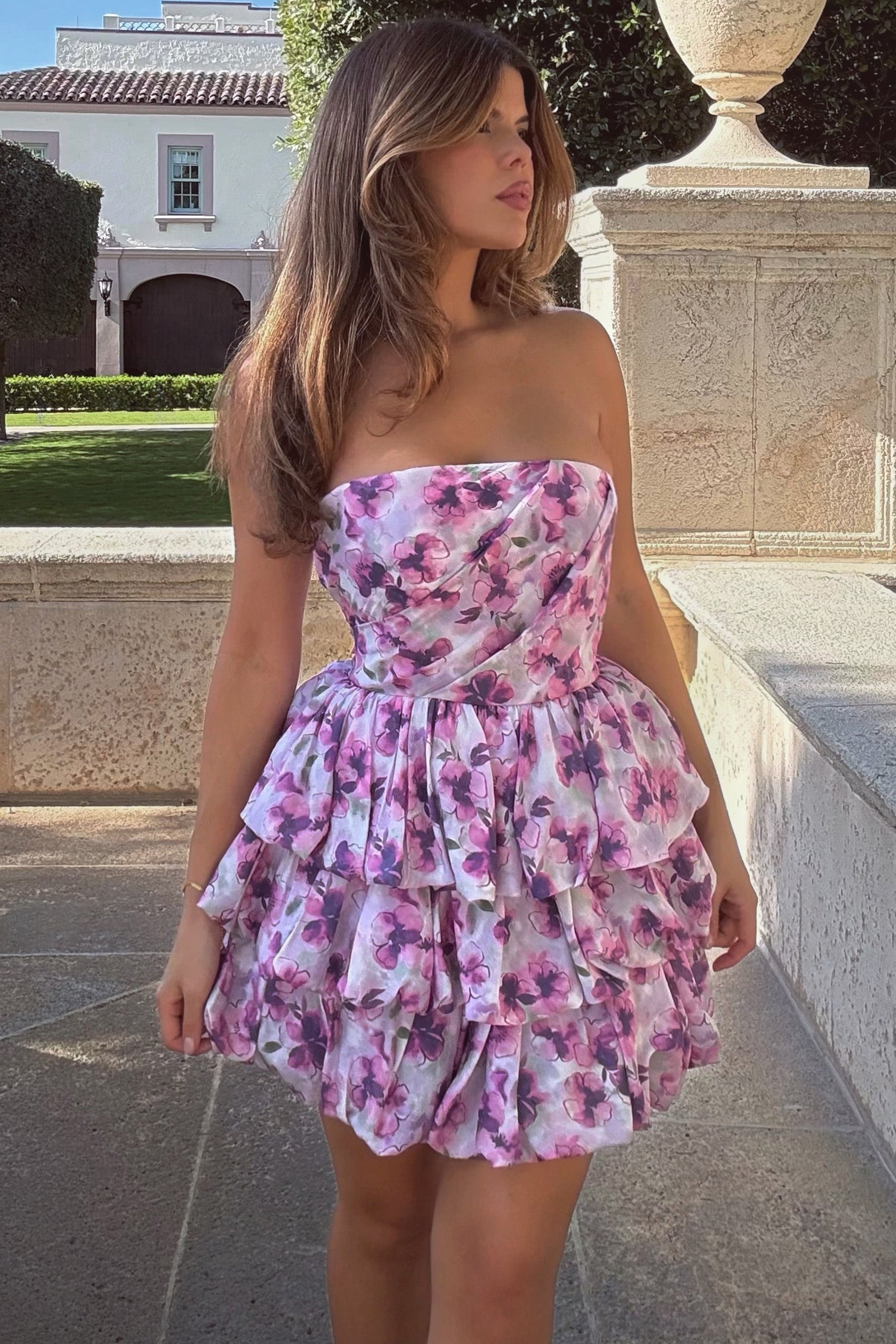Unapologetically feminine and endlessly chic, Swirl is made to captivate. Crafted in a dreamy cream floral organza, this mini dress brings ethereal romance to life with every detail. The bandeau neckline offers a clean, sculpted finish while the tiered puff-ball skirt adds a touch of drama, giving you a stand-out silhouette. Whether you’re sipping cocktails at a garden party or dancing your way through the night, this mini will turn-heads in any room.
