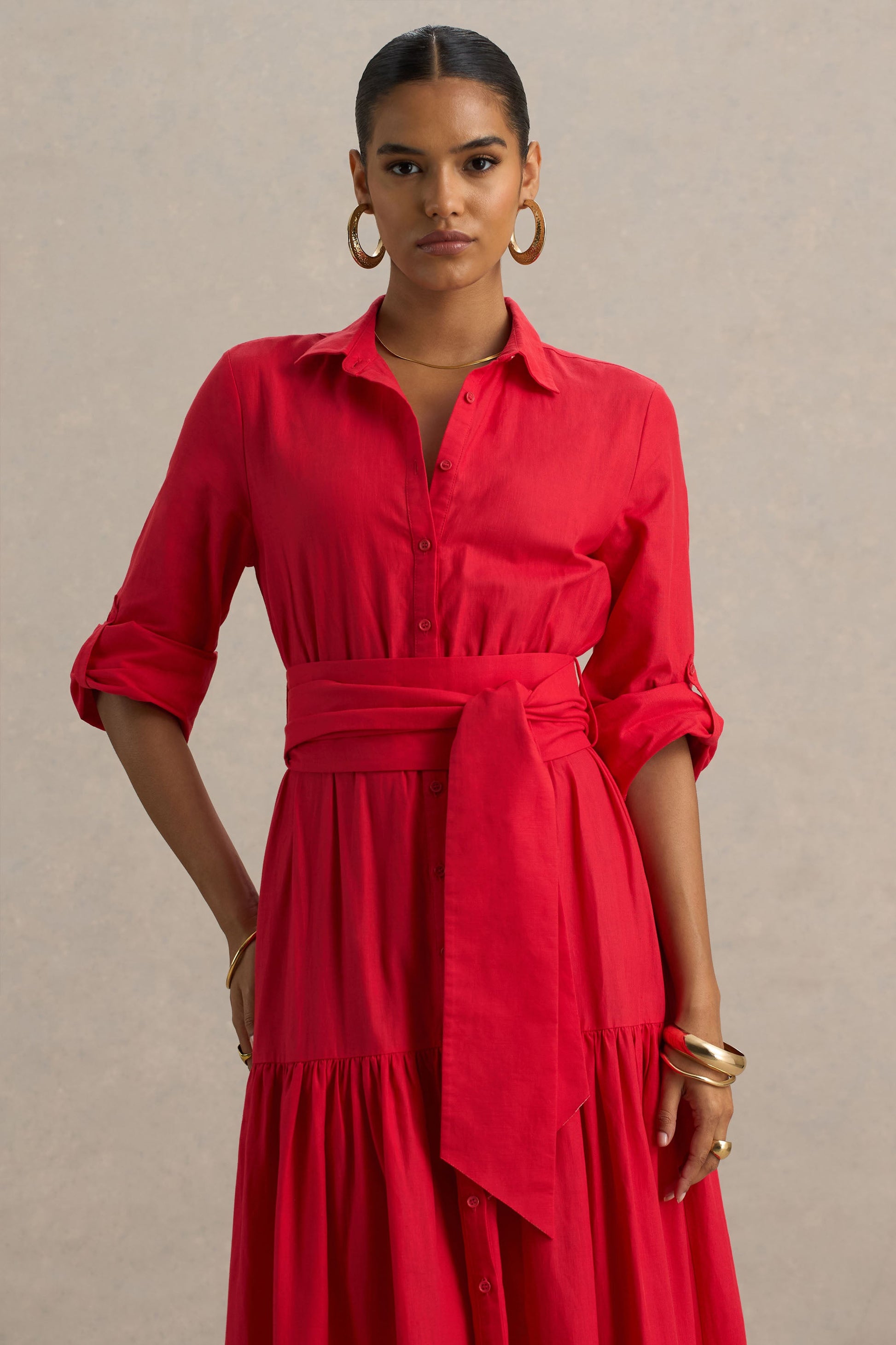 Sydney | Red Belted Maxi Shirt Dress