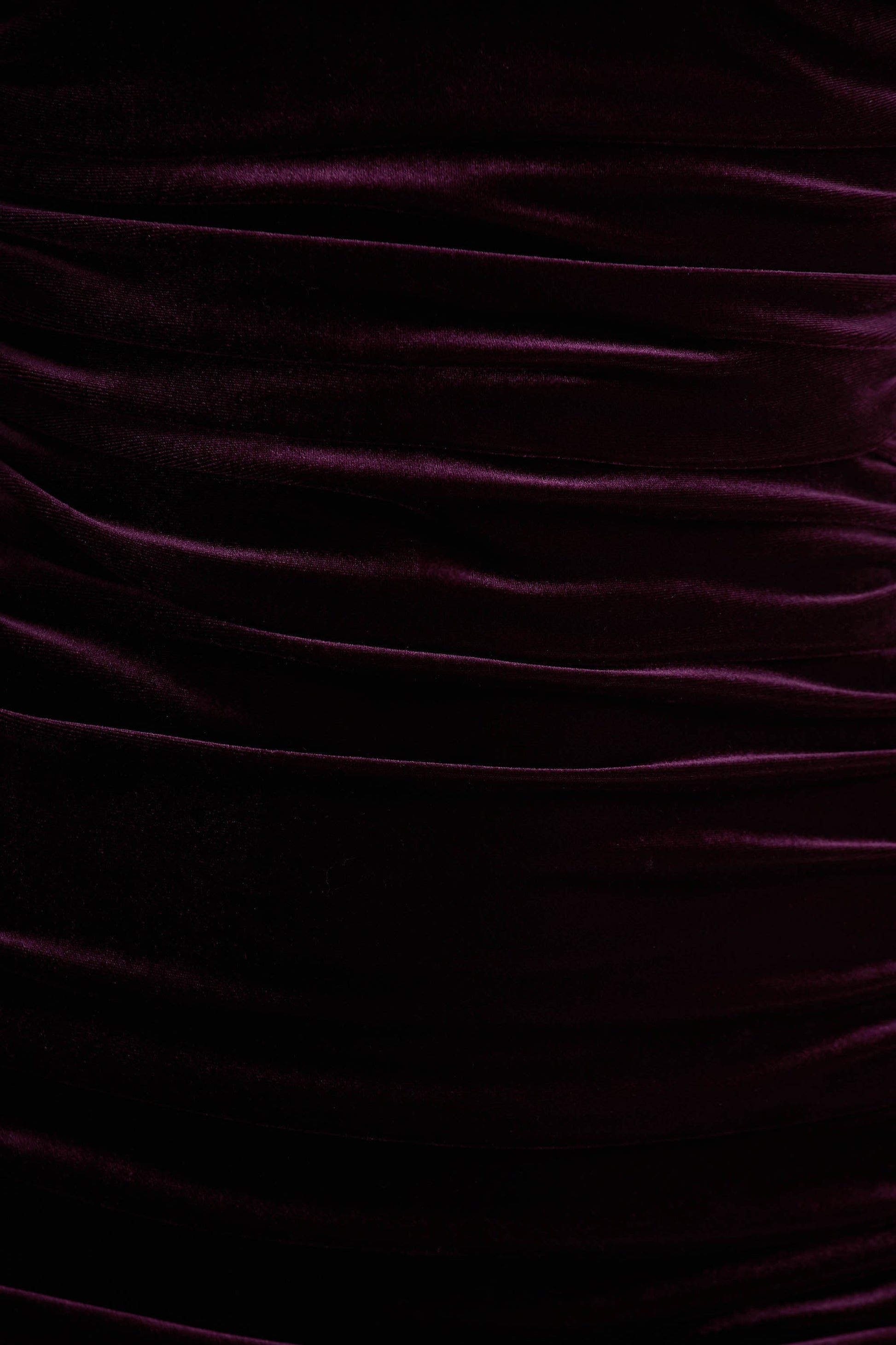 Treat | Burgundy Velvet Asymmetric-Neck Maxi Dress With Ruched Detailing.