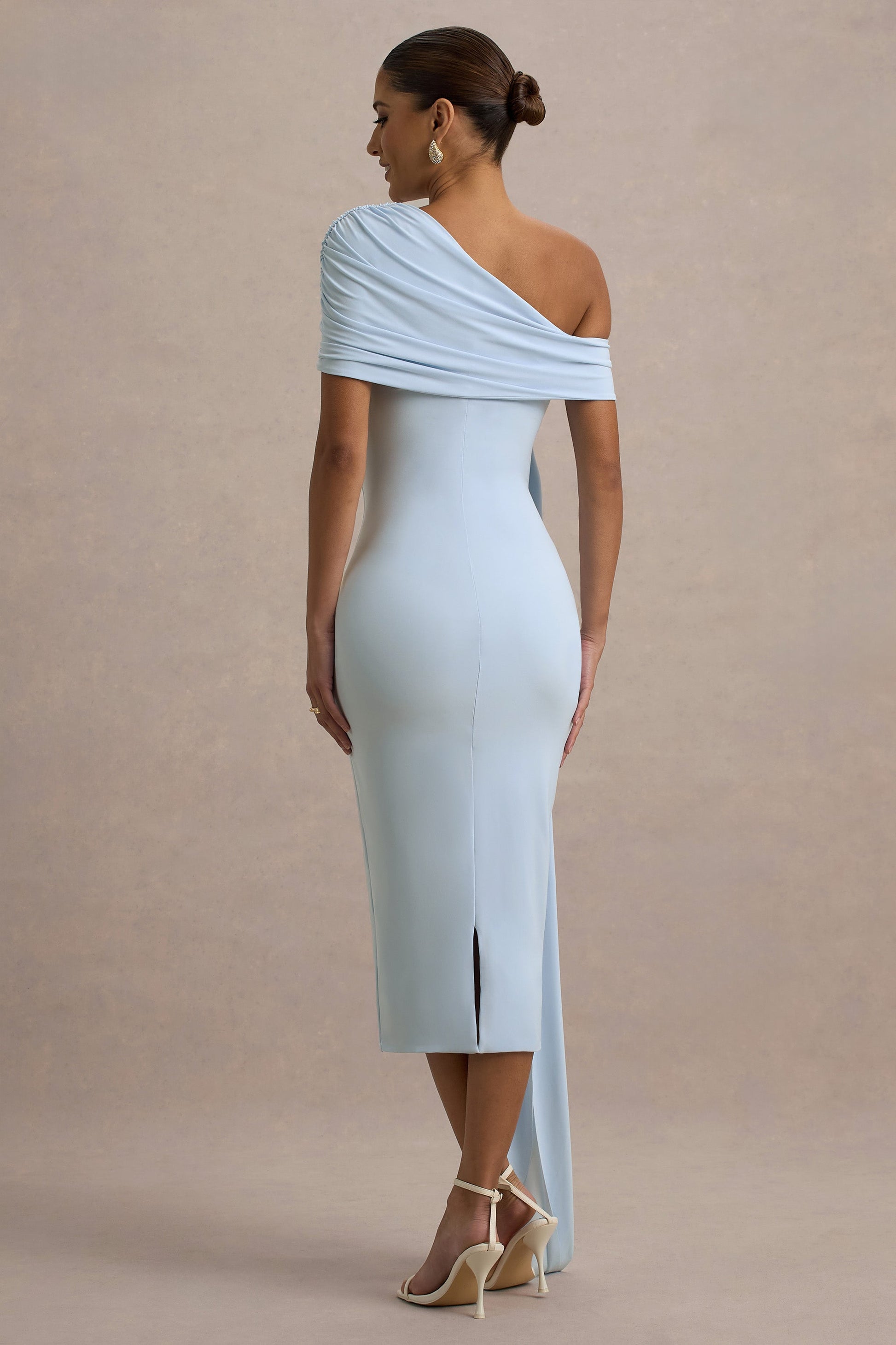 Vallea | Powder Blue One-Shoulder Draped Midi Dress