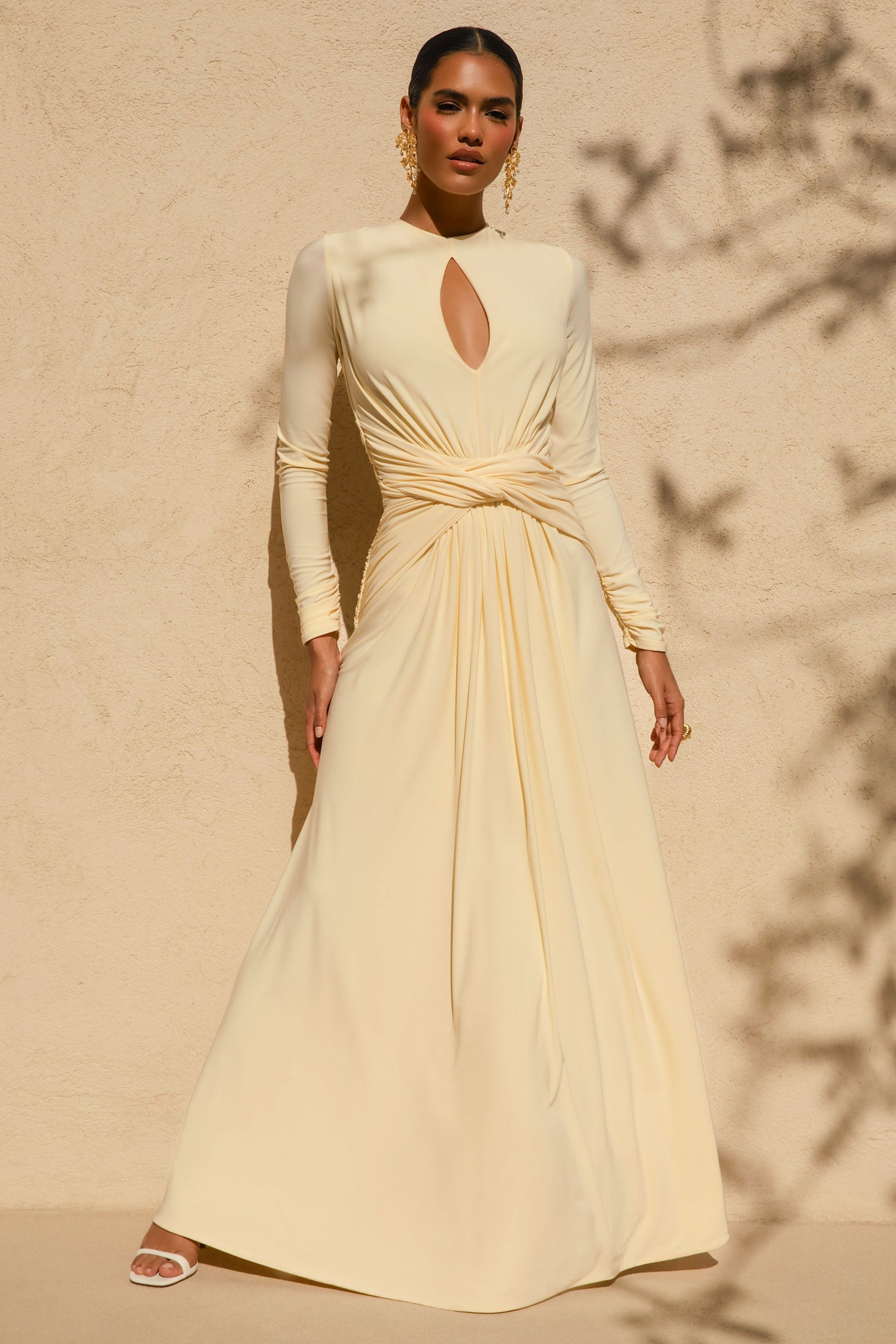 With Me | Lemon High-Neck Maxi Dress With Ruched Detailing